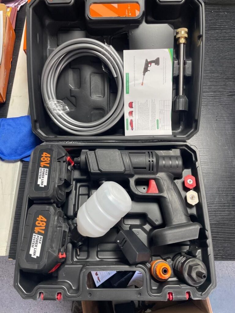 THIS PRESSURE WASHER MACHINE GUN COMES WITH DOUBLE BATTERIES